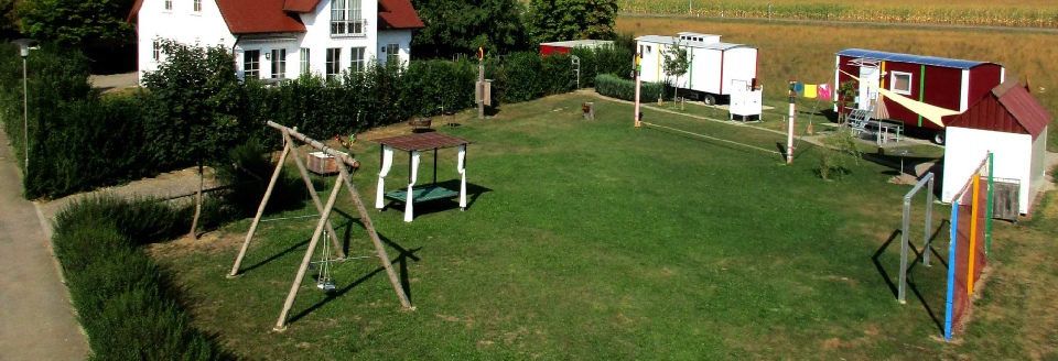 * Ca. 1200 qm große Wiese mit versch. Highlights z.B. Slackline, Botscha u. Badminton...